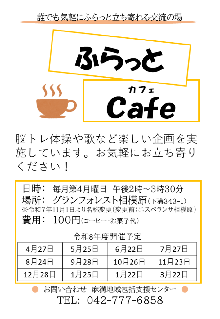 相模原市では、地域包括支援センターの運営を、社会福祉法人、医療法人等へ委託しており、麻溝地域包括支援センターは、社会福祉法人ワゲン福祉会が運営しています。